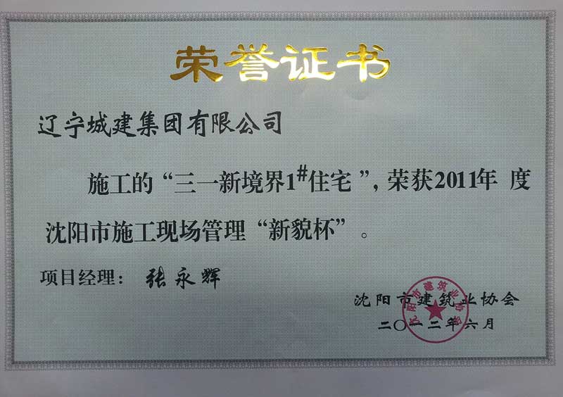 三一新境界项目一期工程:位于沈阳市经济技术开发区,总建筑面积90000平方米,框架剪力墙结构。荣获沈阳市施工现场管理“新貌杯”。